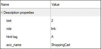 When you created your test, OpenText Functional Testing learned the following object description for the shopping cart: