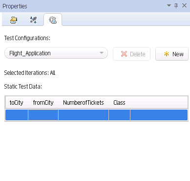 Static data is created by entering the data directly into the test configuration itself. This is done in OpenText Application Quality Management in a grid in the Test Configurations tab (in the Test Plan module)for the selected test.