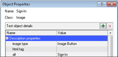 Example: By default, OpenText Functional Testing learns the image type (such as plain image or image button), the html tag, and the Alt text of each Web image it learns.