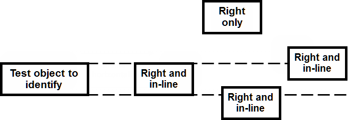 When you select a related object as a horizontal and/or vertical relation in the Visual Relation Identifier dialog box, you can also fine-tune that definition by indicating that it is in line with the test object to identify.