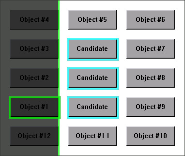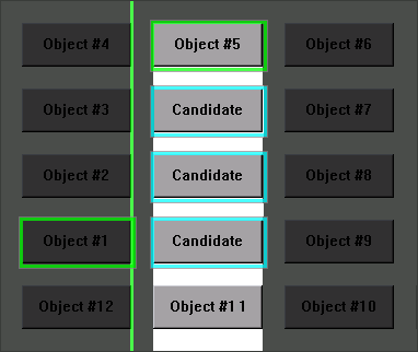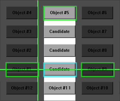 For the purpose of this scenario, the second related test object is Object #5, which is located above and vertically in line with the Candidate object.