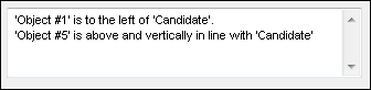 For the purpose of this scenario, the first related test object is Object #1, which is located to the left of the Candidate object in the application.