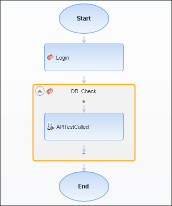 Insert a call to an API test or action in any GUI test action. During the test run, OpenText Functional Testing pauses the steps of the GUI test, runs the API test or action in its entirety, and then continues the GUI test run.
