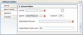 | Implementation function name | The name of the function that you implement to perform the test object operation on the control. Default: The operation name Note: