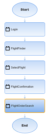 7. 新規オブジェクト・リポジトリを FlightOrderSearch アクションに関連付けます。詳細については,オブジェクト・リポジトリの作成を参照してください。