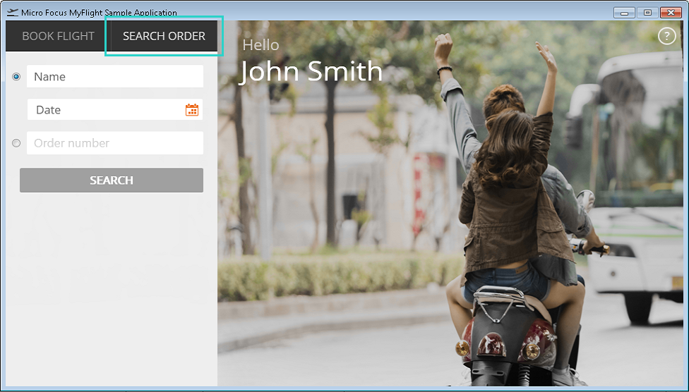 WpfWindow("Micro Focus MyFlight Sample").WpfTabStrip("WpfTabStrip").Select "SEARCH ORDER"