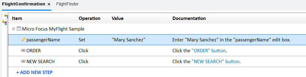 WpfWindow("Micro Focus MyFlight Sample").WpfEdit("passengerName").Set "Mary Sanchez"