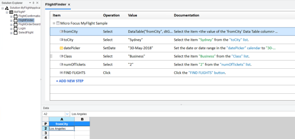 1. UFT OneMyFlightApplication ソリューションを開いた状態から始めます。