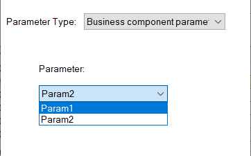 ビジネス・コンポーネント・パラメータ:パラメータ化された値で使用するビジネス・コンポーネント・パラメータを選択します。利用可能なコンポーネント・パラメータの名前が読み取り専用で表示されます。