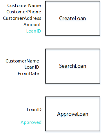 LoanID 输出参数的值从 CreateLoan 组件传递到 SearchLoan 组件,作为该组件的 LoanID 输入参数的值。该值也会传递到 ApproveLoan 组件,作为 LoanID 输入参数的值。