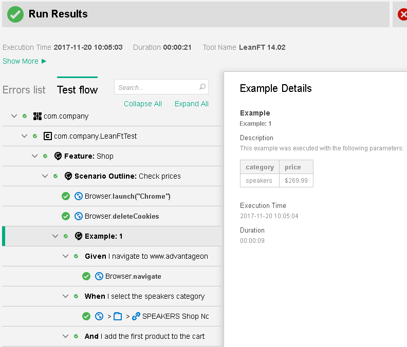 • LeanFtFeature.feature file. Includes the test scenario in the Gherkin language.