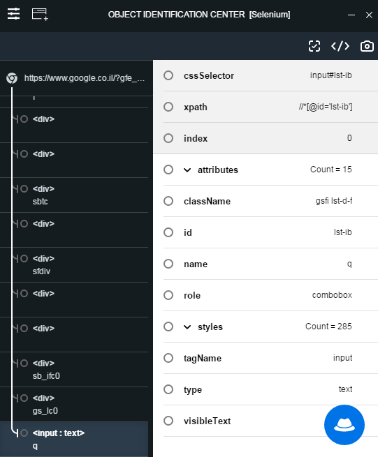 Object Identification Center (OIC) for Selenium