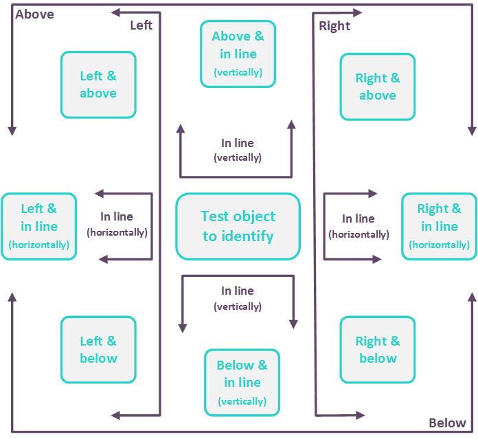 The following diagram illustrates the way OpenText Functional Testing for Developers interprets horizontal and vertical visual relations.