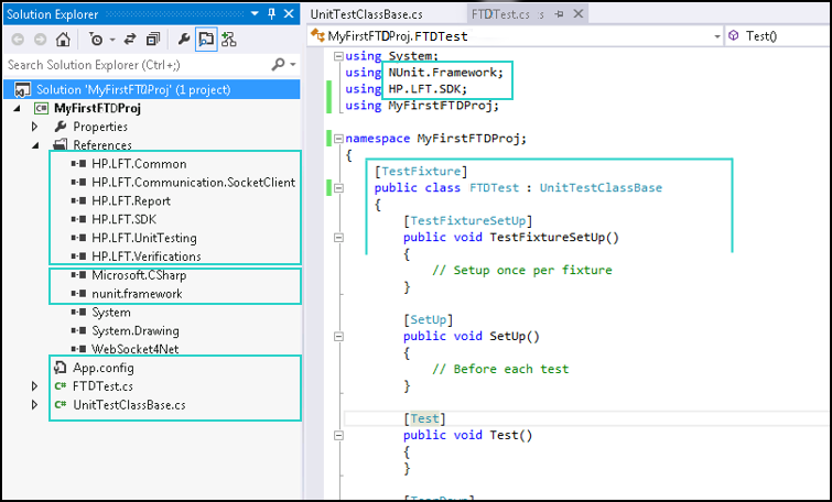 Reference to the HP.LFT.SDK and related HP.LFT.* elements (project template only)