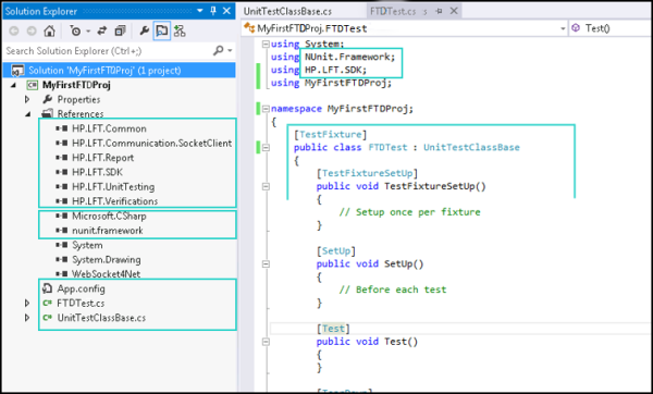 A basic FTDTest.cs template where you write your code (project and item templates).