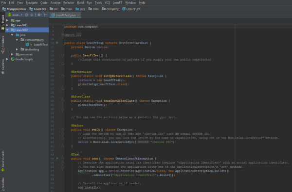 The Functional Testing for Developers module template for Android Studio includes the following: