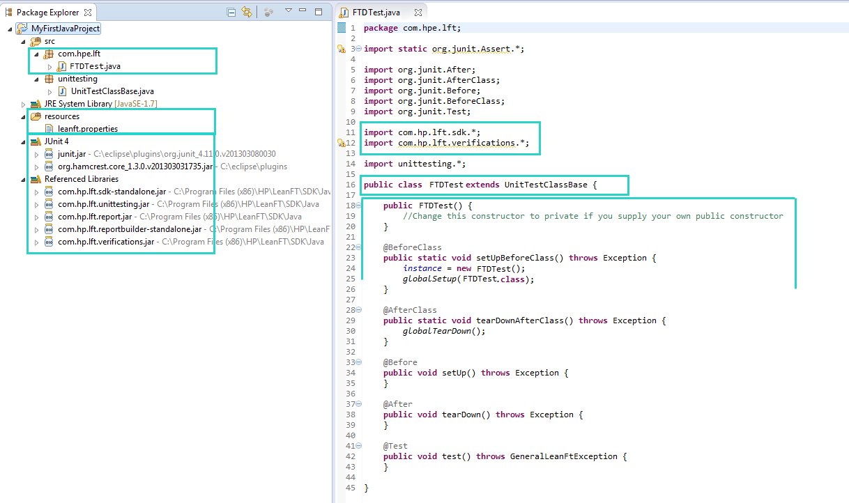 Example: A new OpenText Functional Testing for Developers JUnit project in Eclipse: