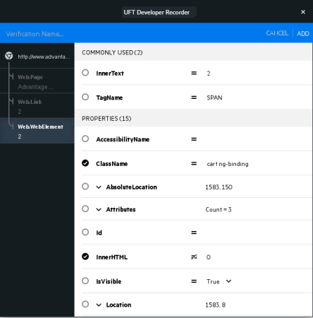 Click ADD to add the verification step to the steps you recorded.