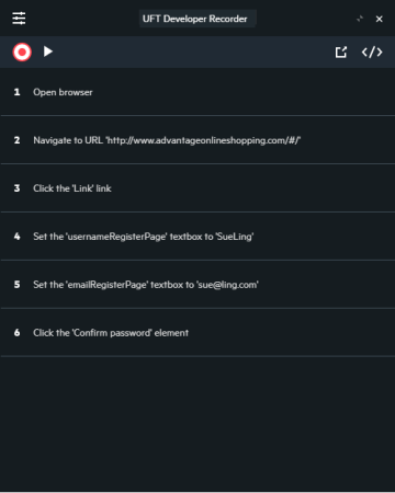 The Test Recorder is a tool for recording user operations and verifications on applications and generating a test script from the recorded steps.