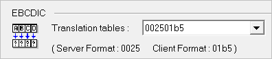 The first four digits of the listbox item represent the server format. The last four digits represent the client format. In the above example, the selected translation table is 002501b5. The server format is 0025 and the client format is 01b5 indicating a transfer from the server to the client. In a transmission from the client to the server, you would select the item that reverses the formats—01b50025 indicating that the client's 01b5 format needs to be translated to the server's 0025 format.