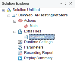 VuGen generates the swaggerApi.js file and adds it to the script . It can be viewed in Solution Explorer under the Extra Files folder.