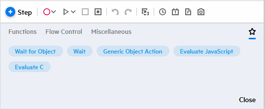 Select a step from one of the following tabs and drag it to the required location in the script.