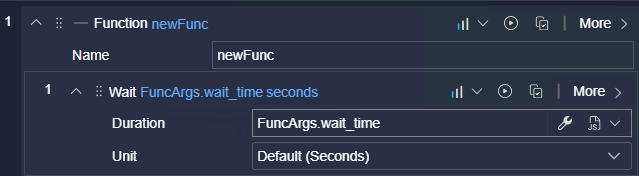 Click More in the new function to open the Step editor.