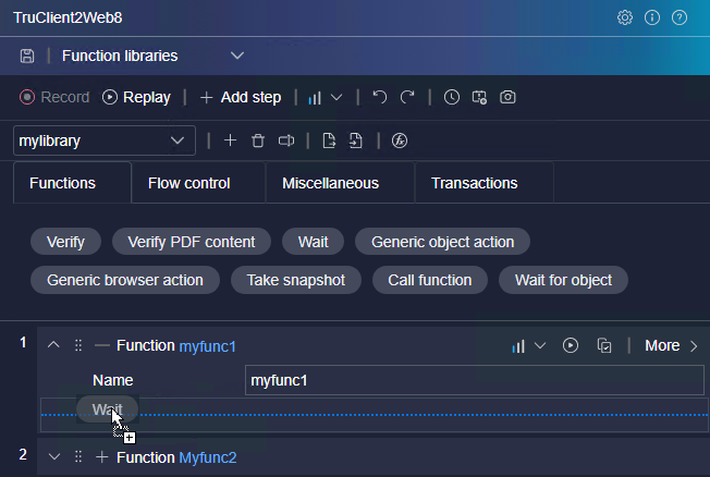 This topic describes how to create TruClient functions and function libraries for your TruClient 2.0 - Web scripts.