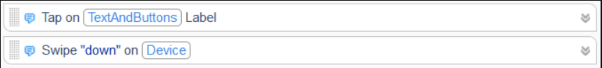 While TruClient - Web scripts use terminology such as Click and Link, the steps created by TruClient - Native Mobile protocol use mobile-specific terminology such as Tap and Swipe: