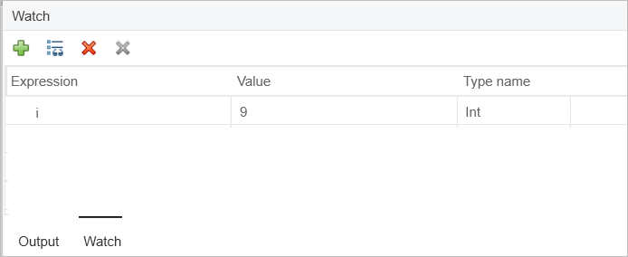 | Type name | The type of the variable's value after it is evaluated (for example, Integer or Char). If a variable cannot be evaluated in the current context, the type displayed is Incorrect expression. |